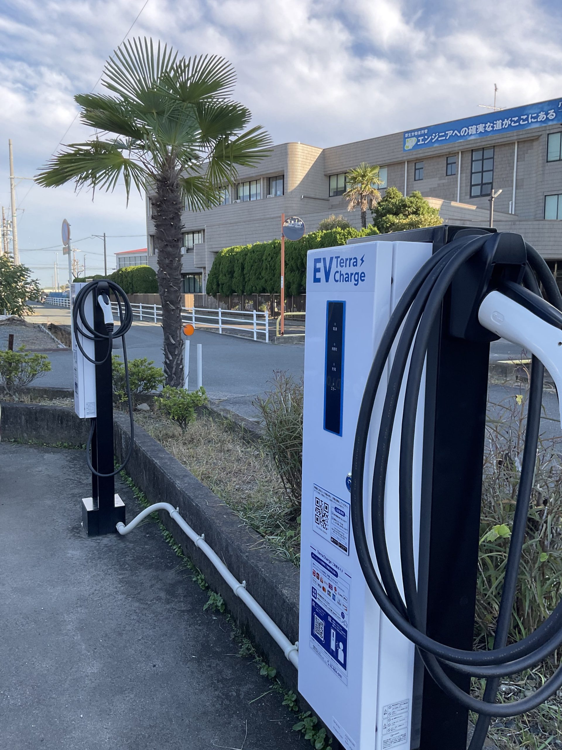 敷地内にEV充電器を新たに設置いたしました。